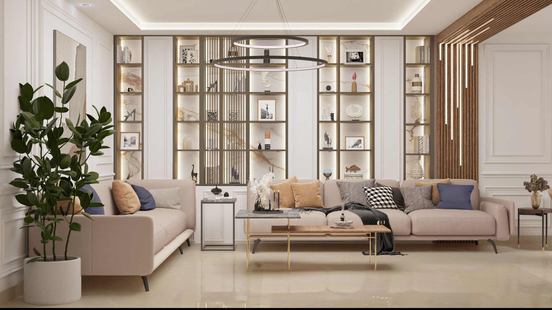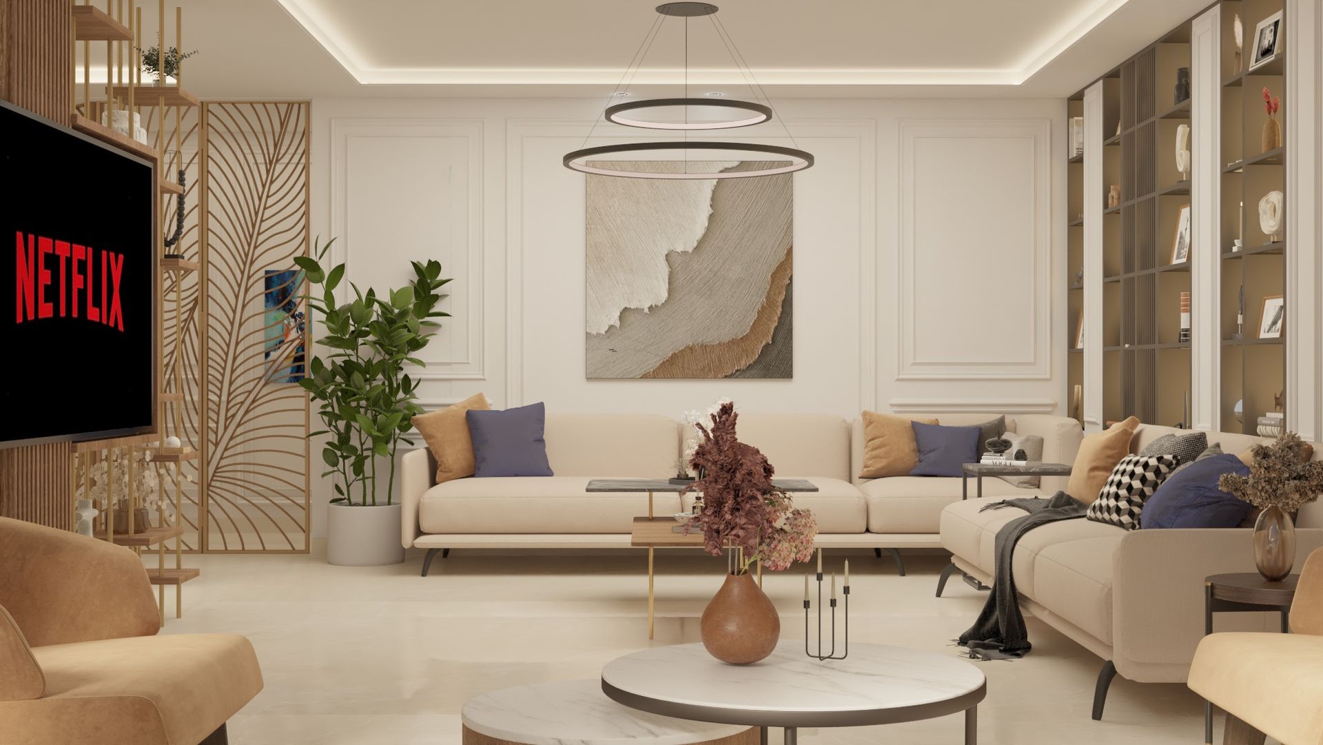 نطاق العمل: التصميم المعماري الداخلي والتنفيذ